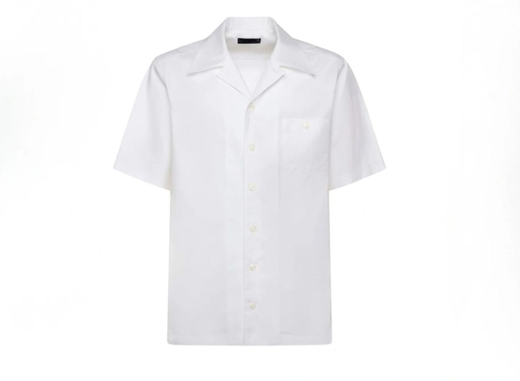 Revere collar short sleeve shirt with chest pocket.